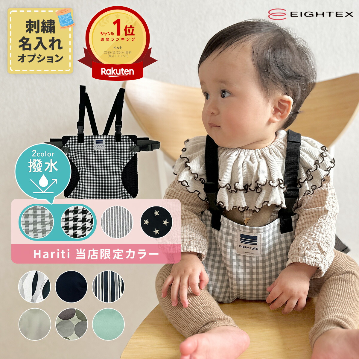 楽天ランキング1位★高レビュー多数★ 名入れ 刺繍可 キャリフリー チェアベルト ホールド 正規品 撥水 ラッピング ベビー 赤ちゃん キッズ 立ち上がり防止 お出かけ おすわり補助 チェア お食事 肩ベルト 転落防止 椅子 子供 子ども 女の子 男の子 持ち運び 軽量 肩紐付き
